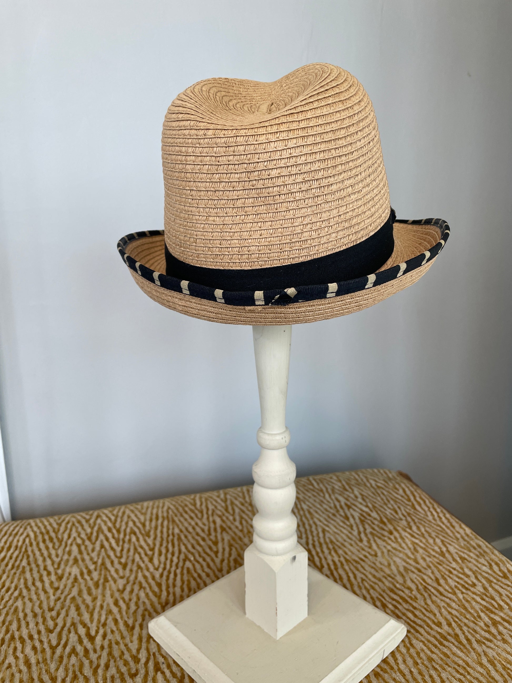 A195-3019B - 2” Brim Fedora Hat - Tan - Paperbraid