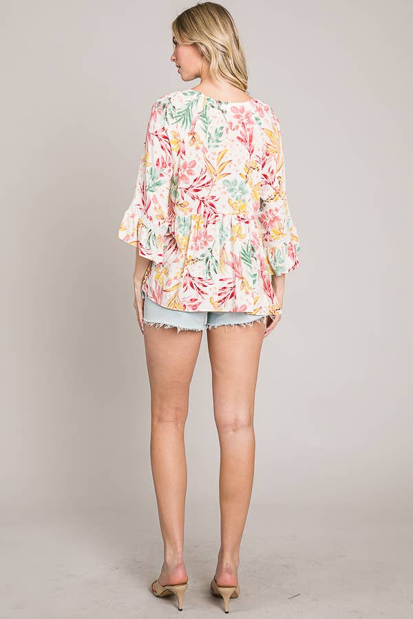 C090-T1156 - Bracelet sleeve length V Neck babydoll top