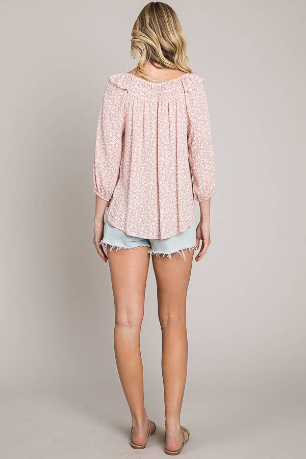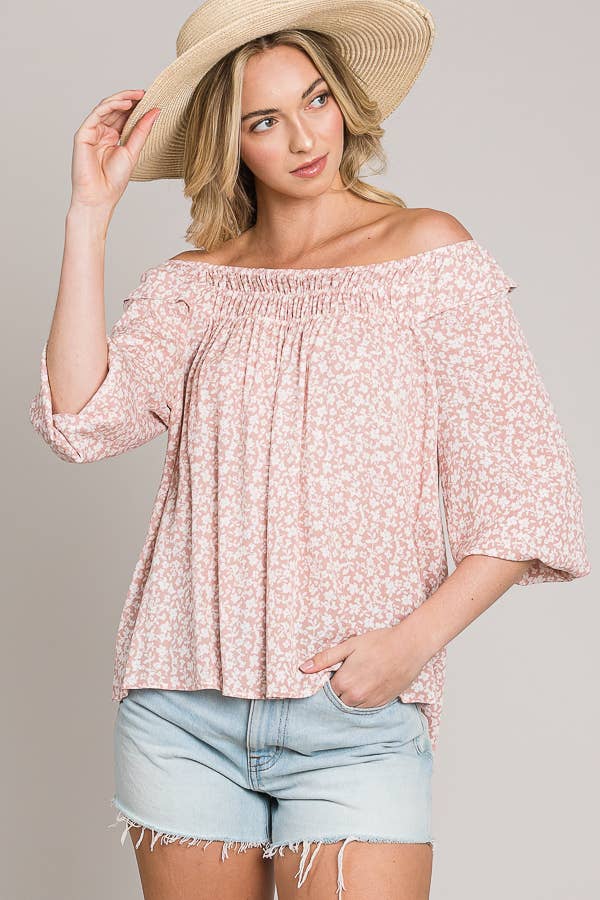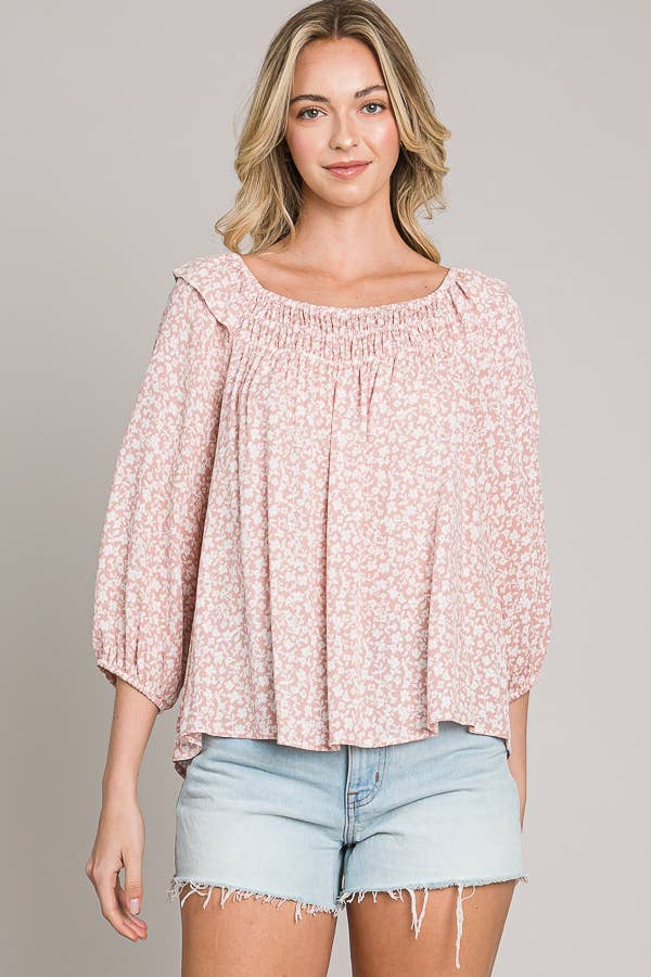 C090-T1159W - Bracelet sleeve length woven peasant top