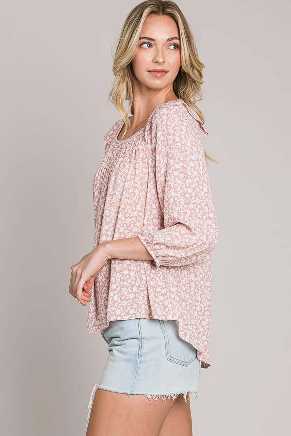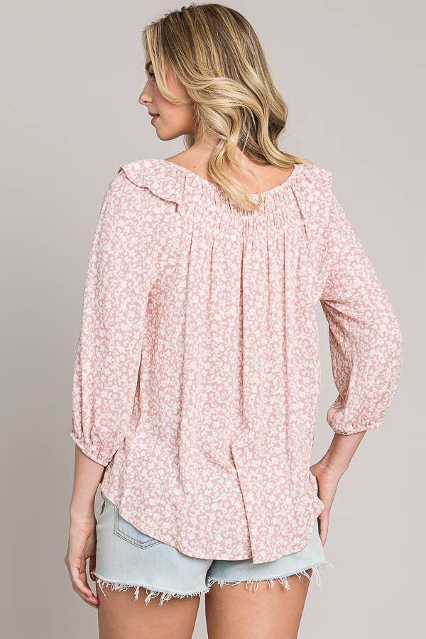Bracelet sleeve length printed woven peasant top Model is wearing size "SMALL" Height 5'10'' Bust 32'' Waist 24'' Hips 38''