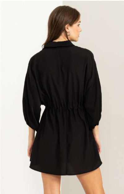 Long Sleeve Cinched Waist Button Up Shirt/Dress