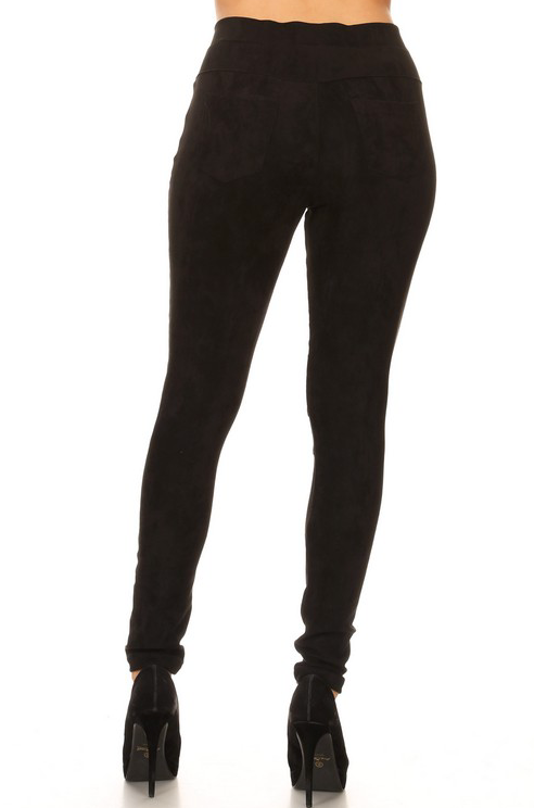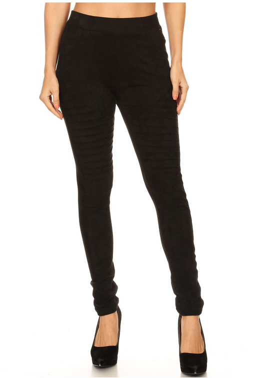 Let this moto pant tag along for a cool-girl style! Stretchy, vegan suede fits your body like a glove with a mid-rise waist and skinny leg design perfect for styling with booties.