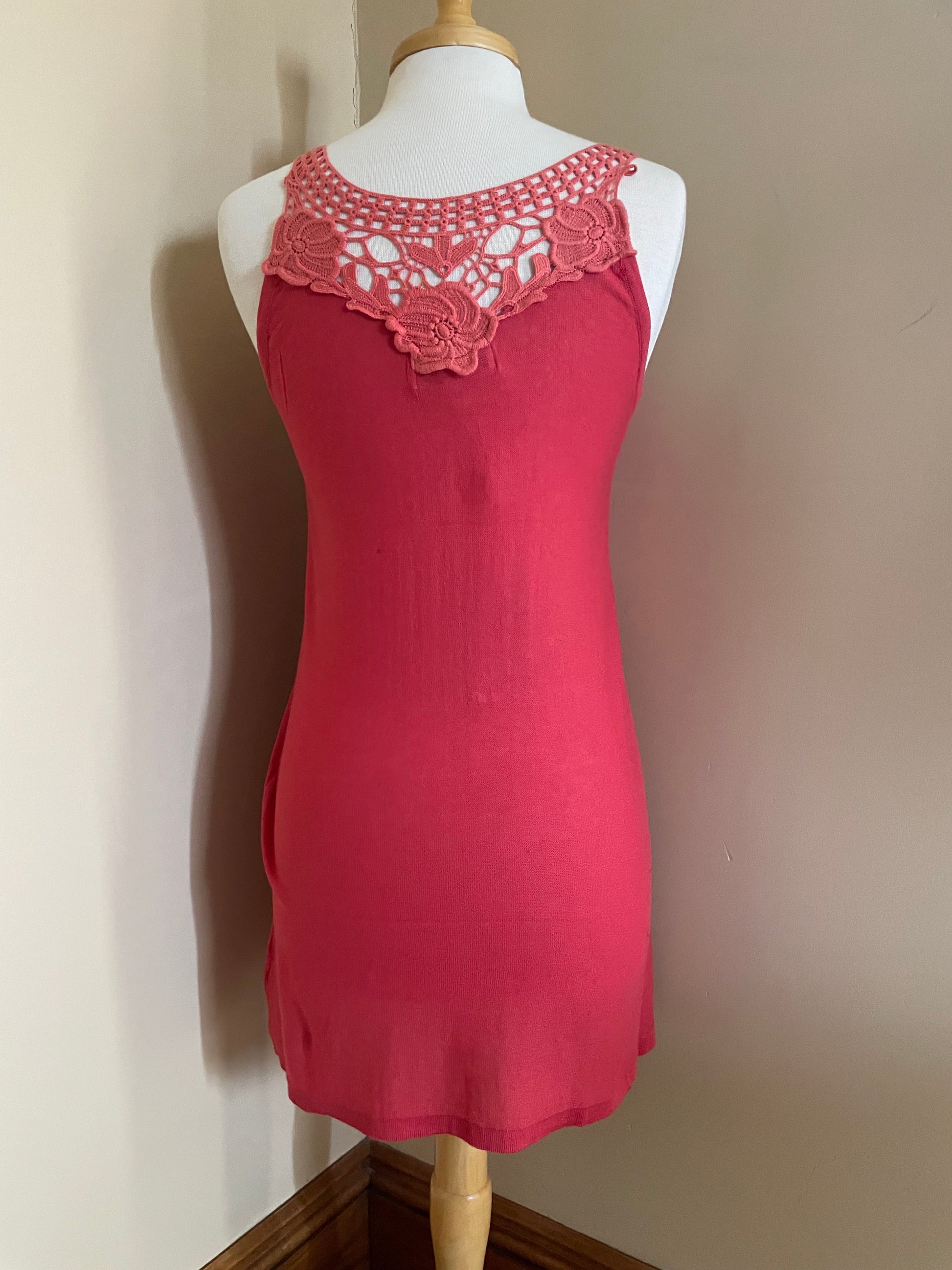 Pretty Angel Beaded Lace Trim Dress / Tunic - Coral