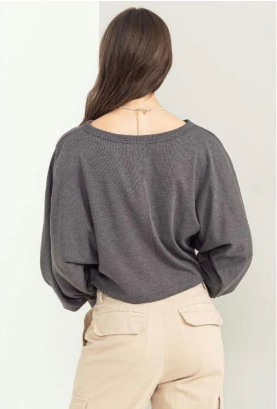 Grey Puff Sleeve Top