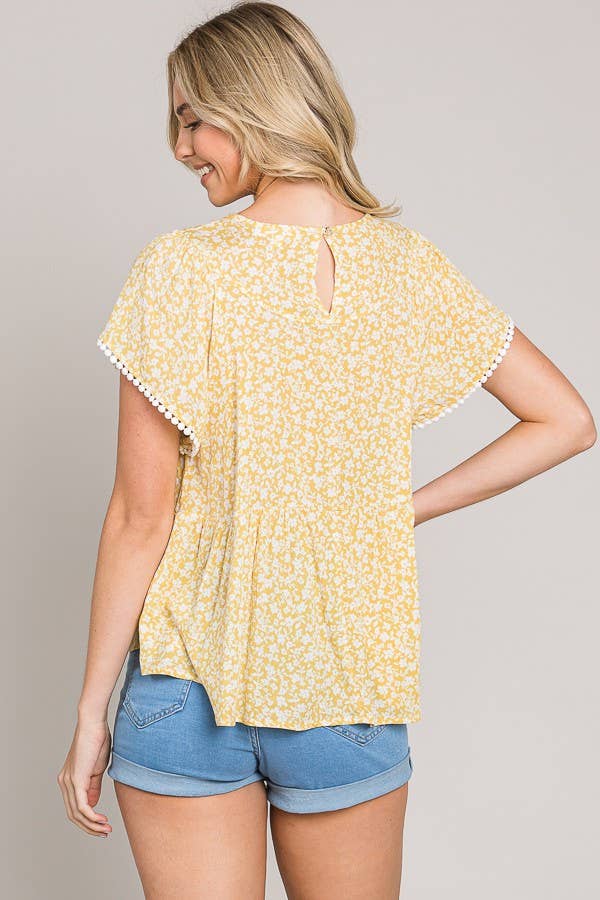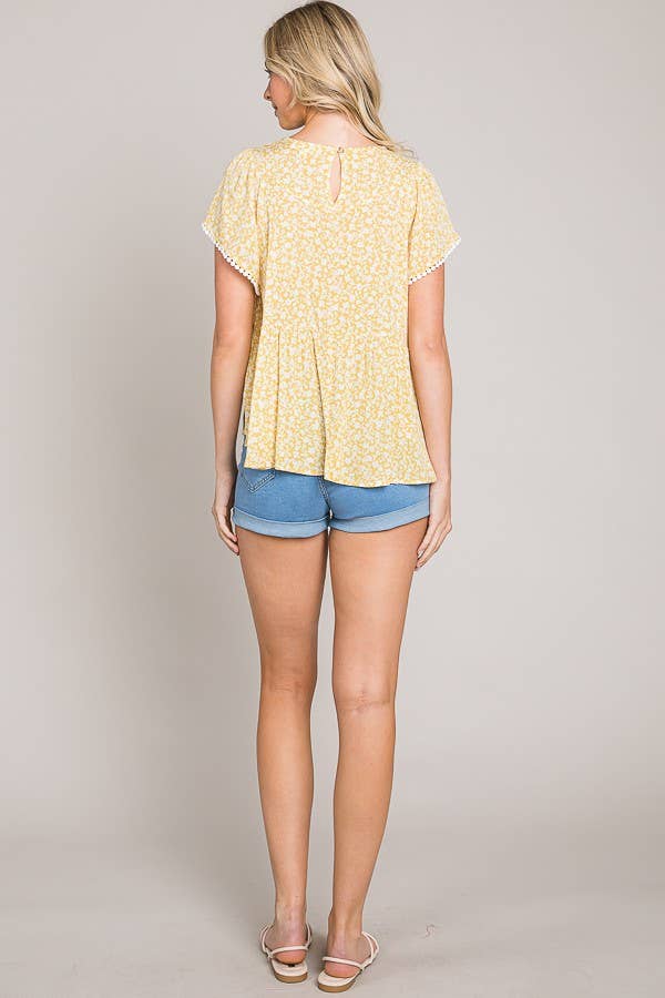 C090-T1067 - Ditsy Floral Lace Trim Baby Doll Top