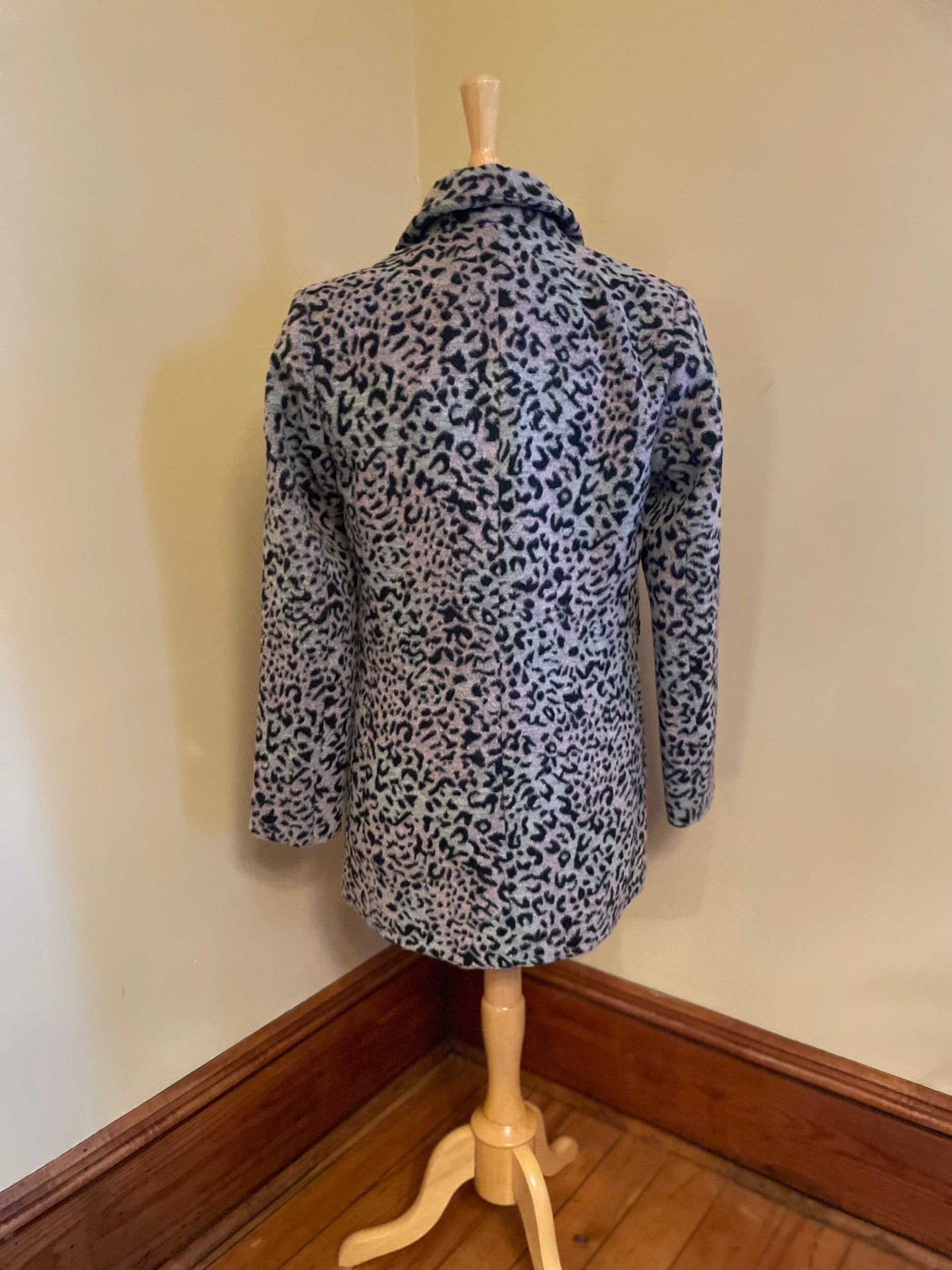 Leopard Print Coat - Lavender and Black. Lined. Pockets