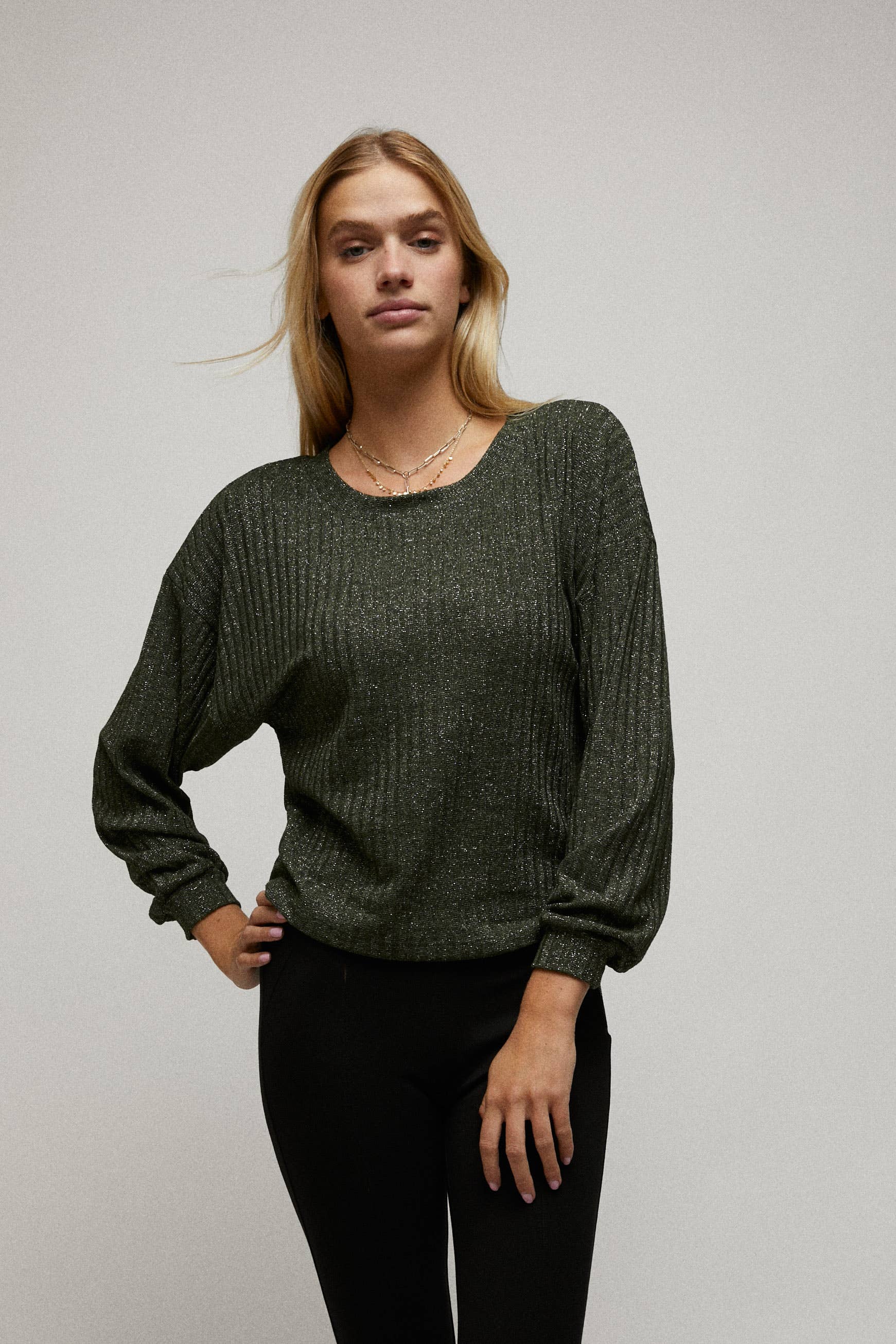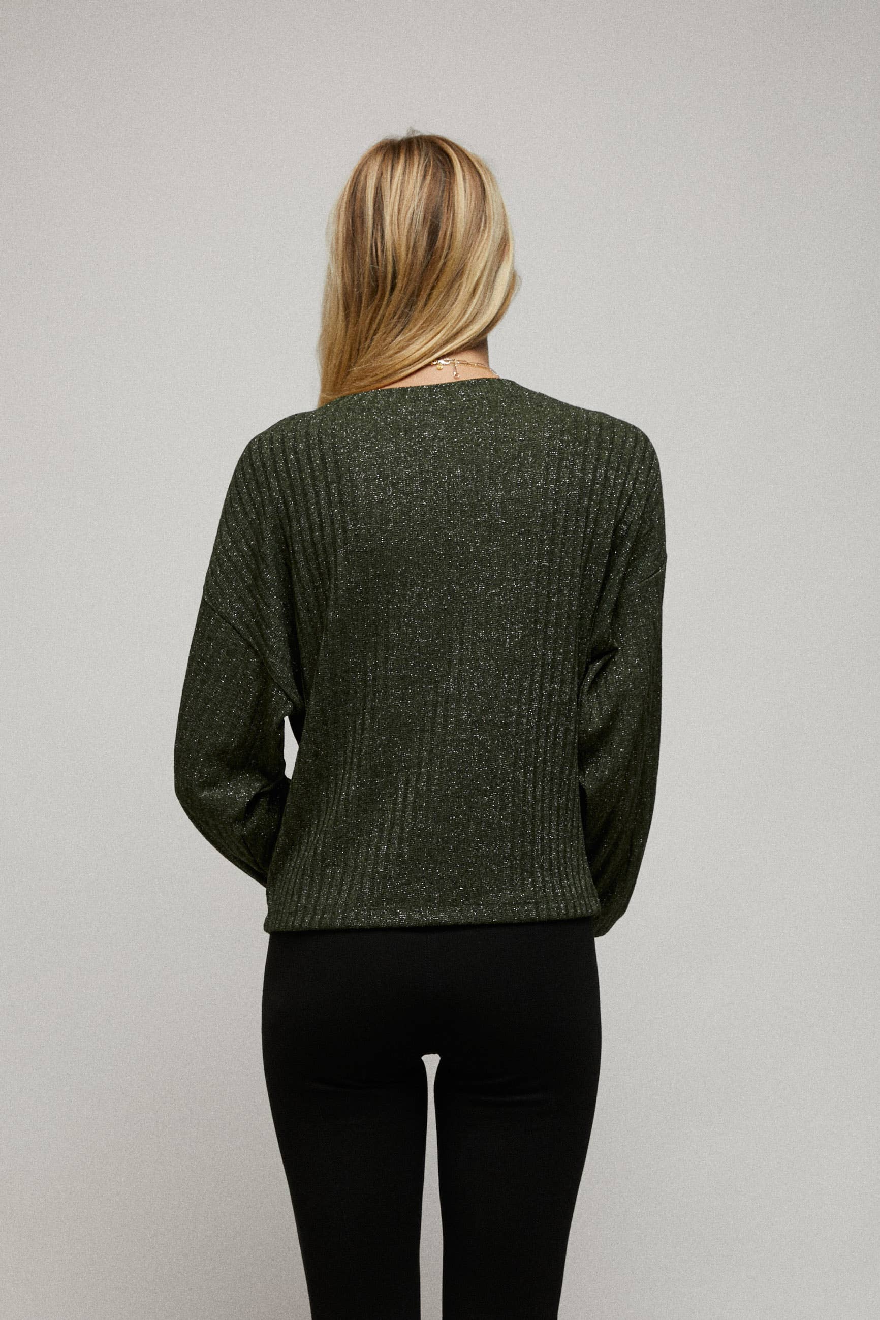 C090-T5257 - Long Sleeve Boxy Cropped Top Lurex Rib Knit