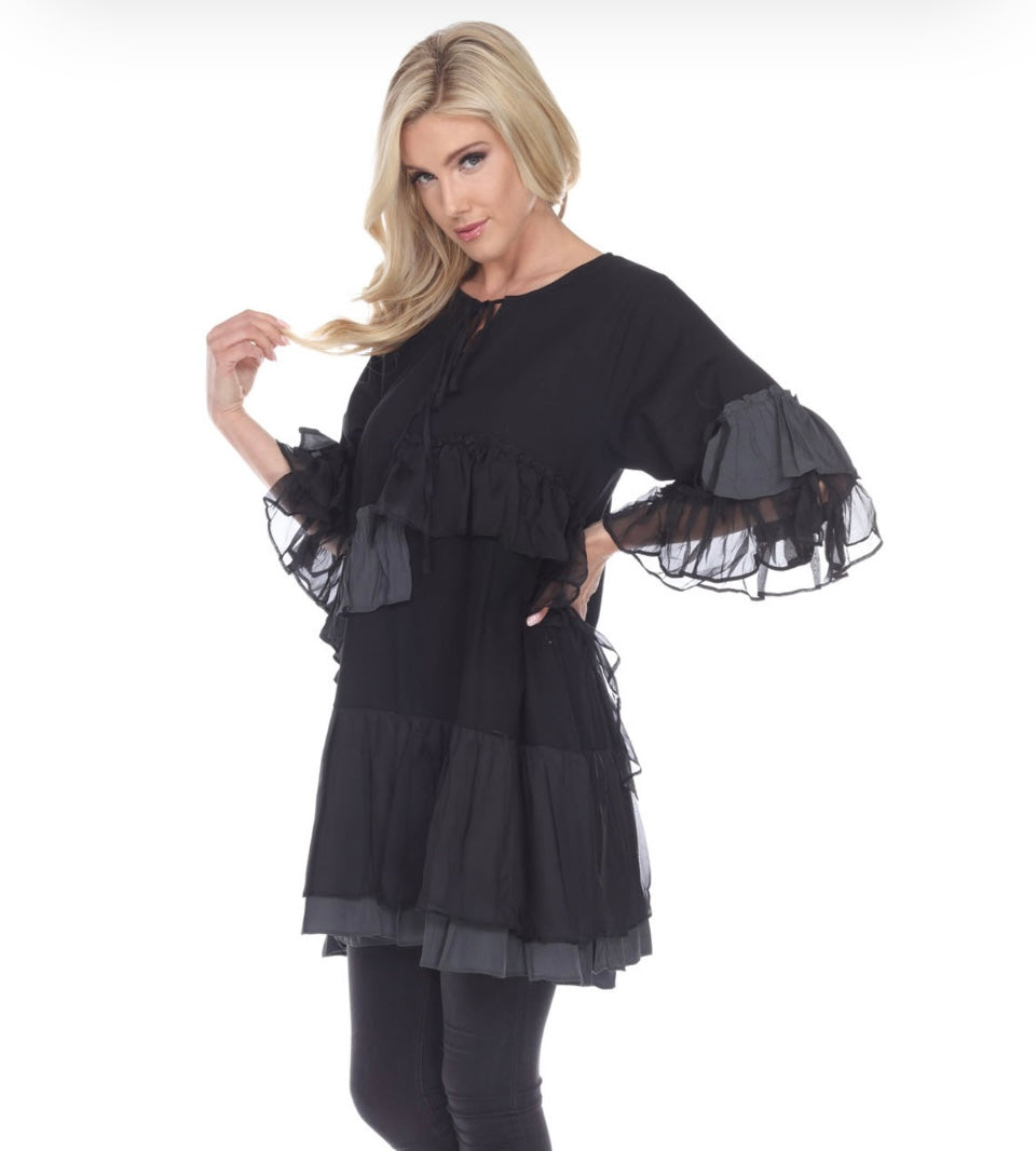 Pretty Angel Dress / Tunic Black Tiered Ruffle