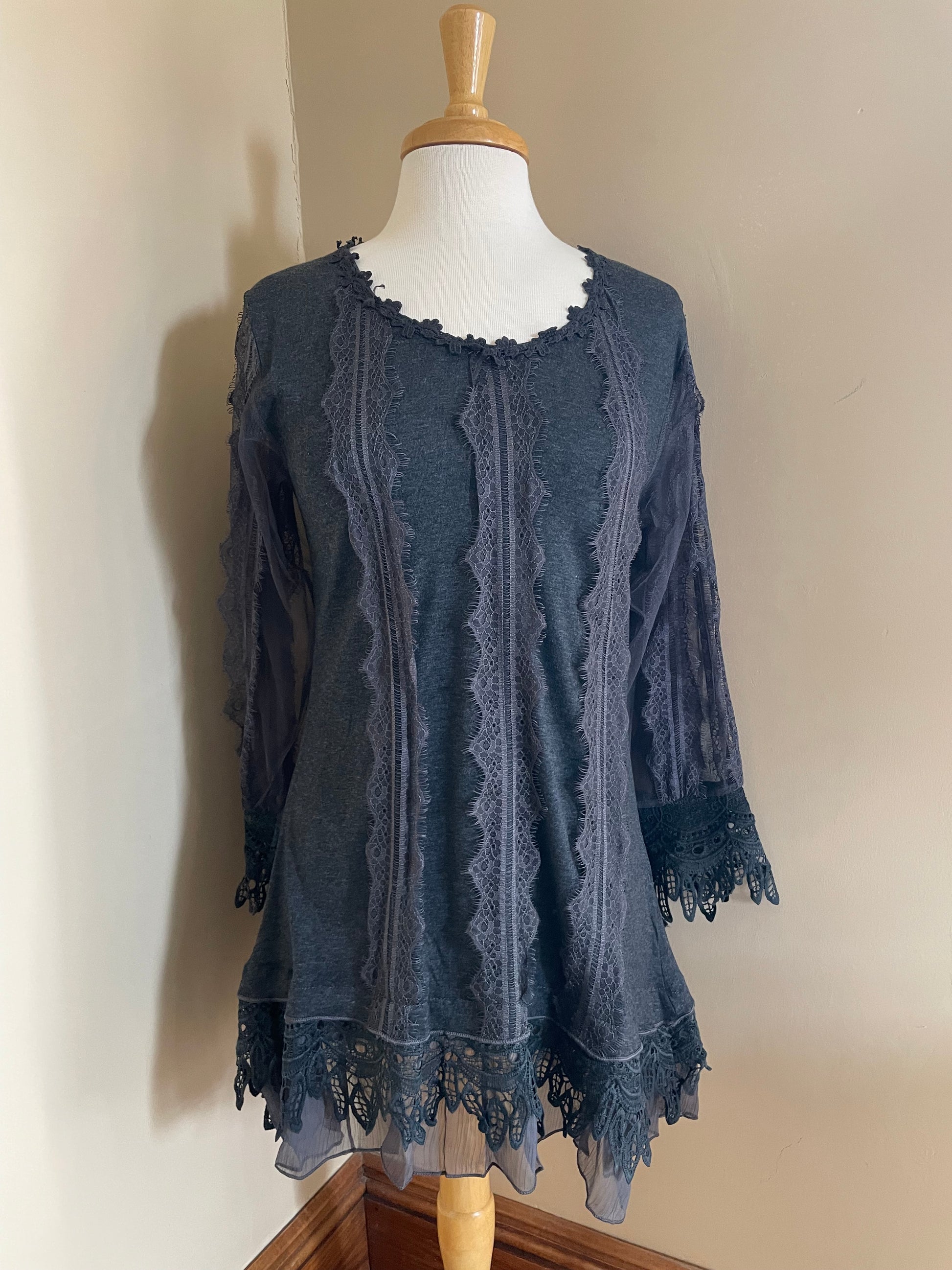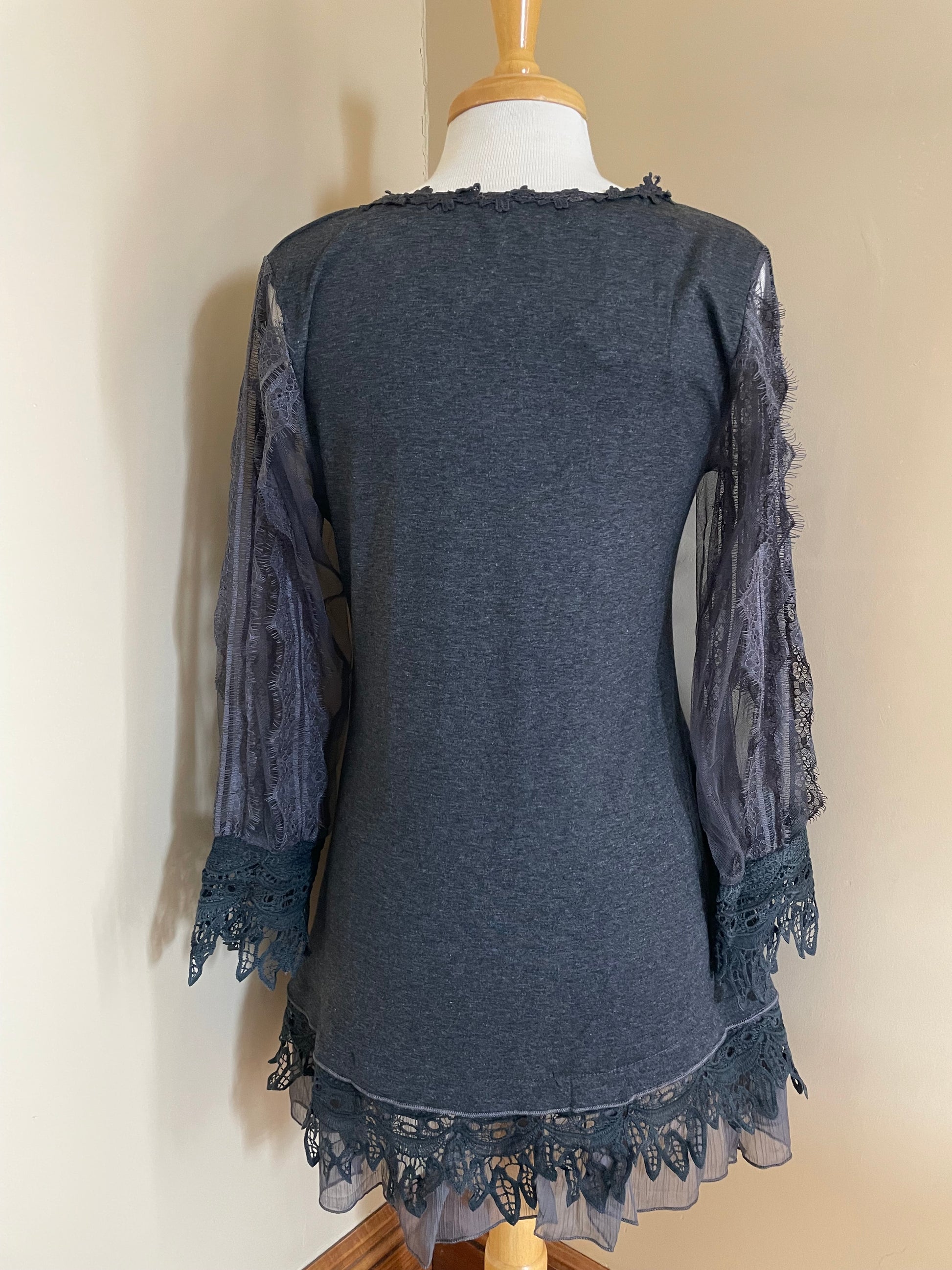 Pretty Angel Lace Trim Tunic/Dress - Charcoal Heather
