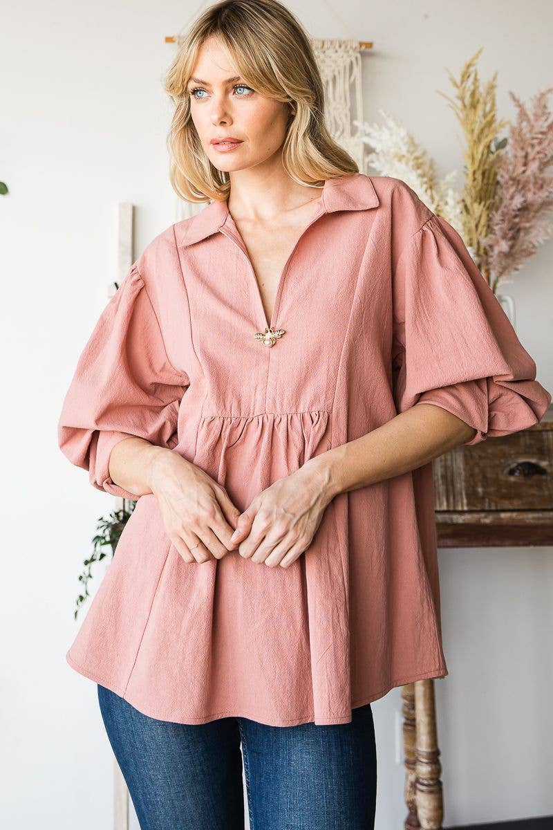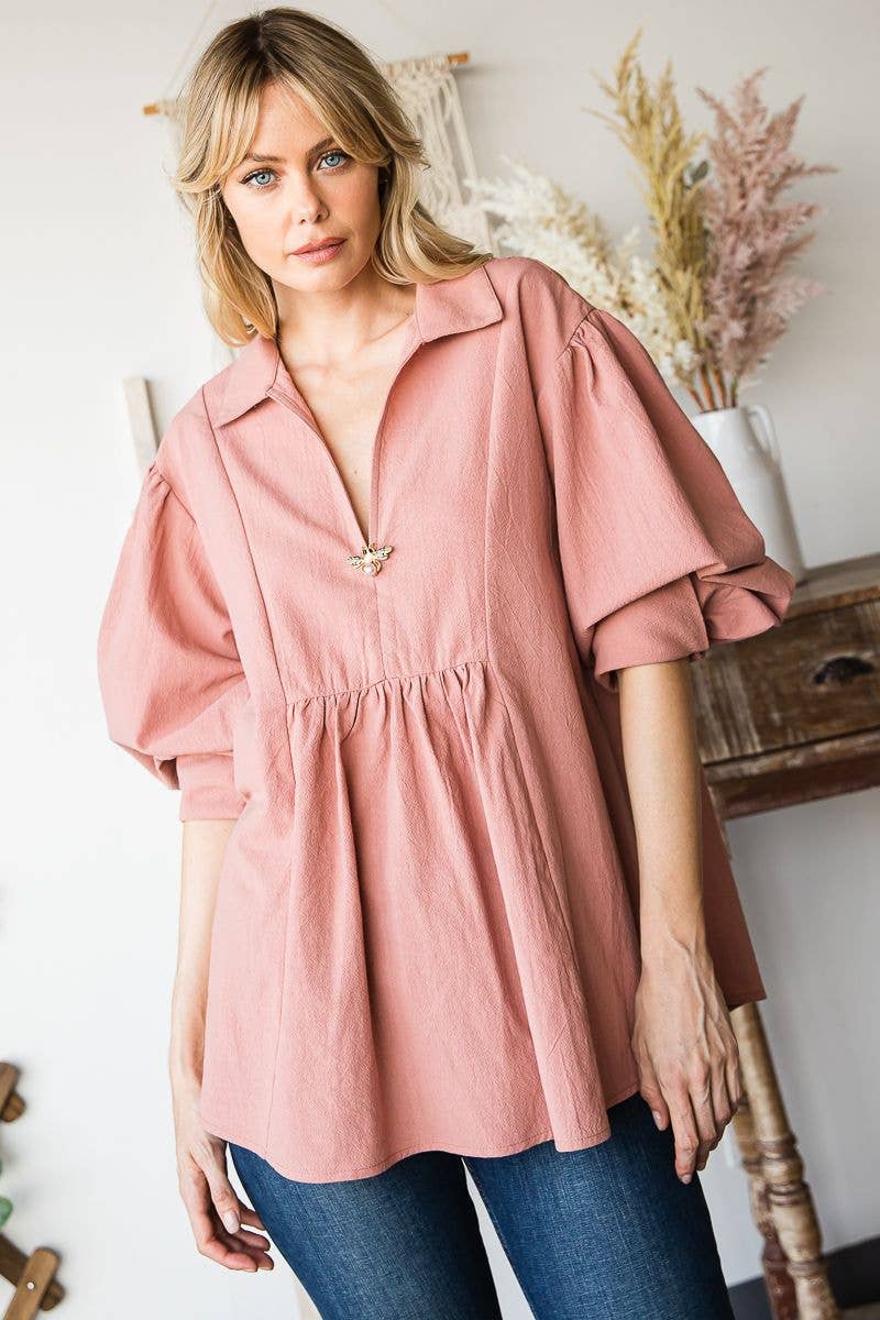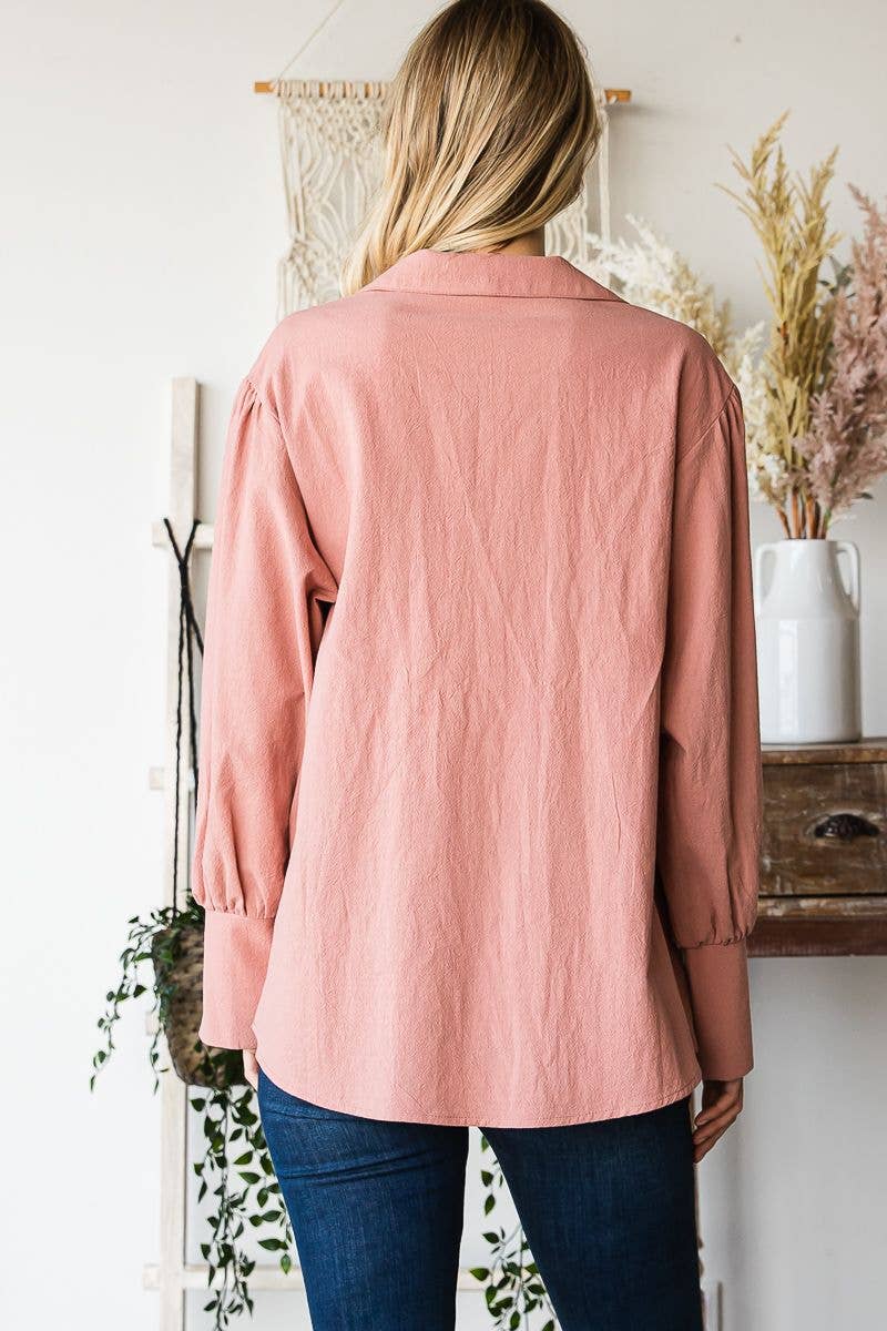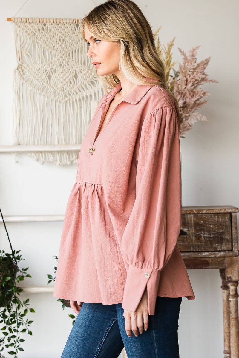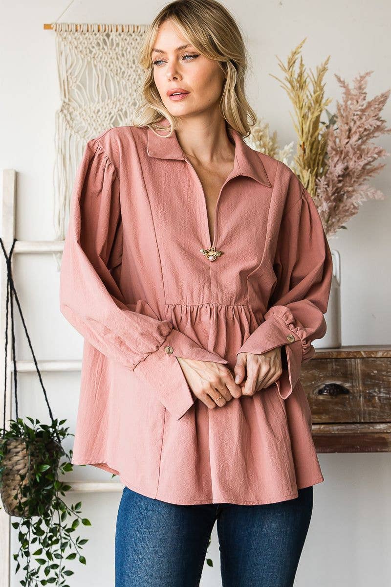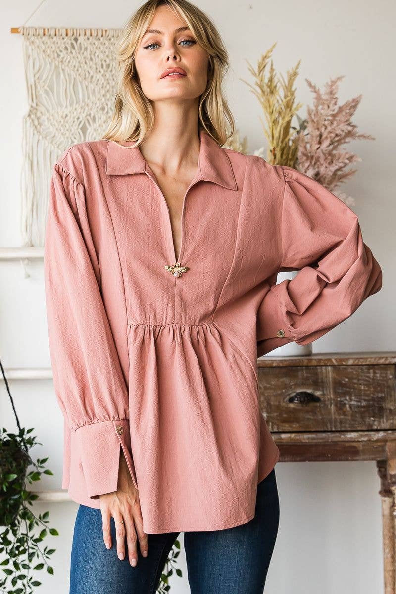 C090-T1186 - Long sleeve bib front collar poet blouse